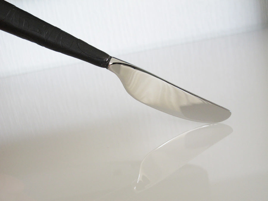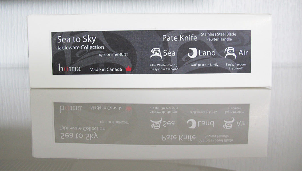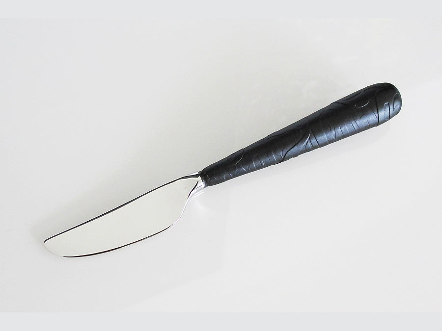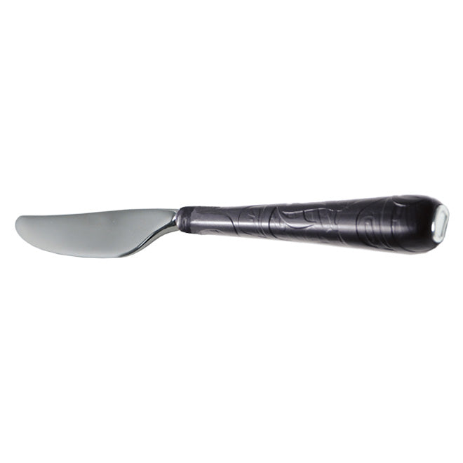 - This intricately carved native artwork handle is made of recycled glass. The blade is stainless steel and perfectly sized for your butter, pate or other spreads.
