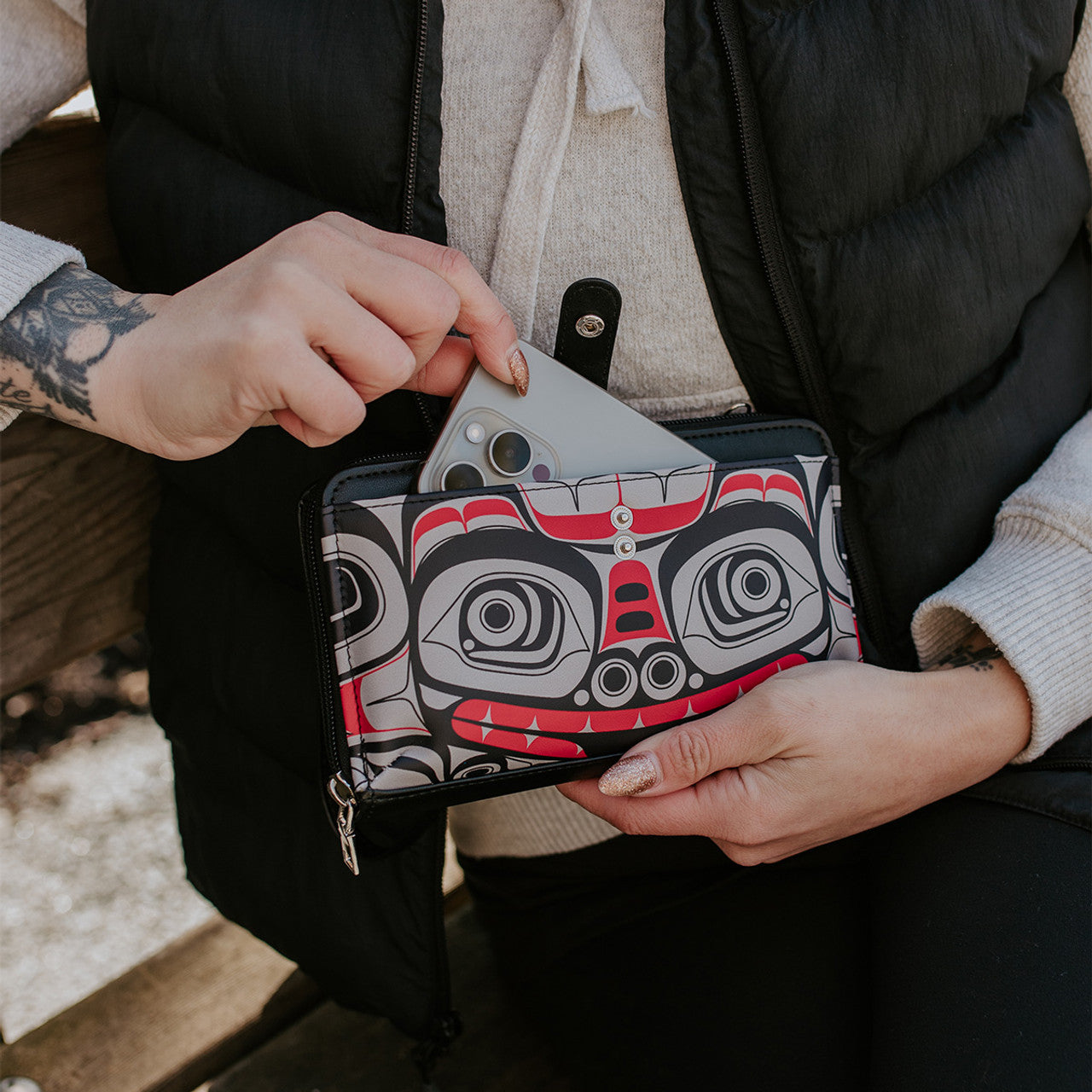 A sleek, versatile bag featuring the Bear design by Indigenous artist Morgan Asoyuf (Tsimshian, Ts’msyen).